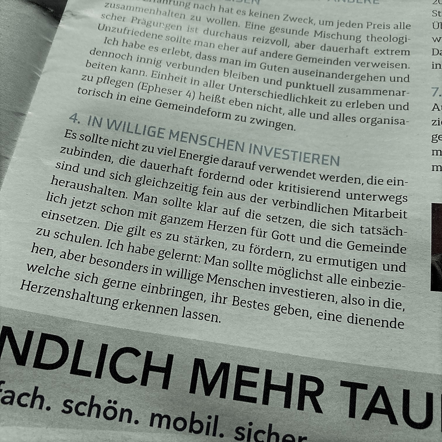 „Kein Bock auf Burn-Out”: Unter diesem Titel hat das Magazin Gemeinde.Praktisch 7 Tipps aus meinen „50 Lessons Learned – Gemeinde leiten – aber wie?“ rausgezogen. Ich hatte ja nach 12 Jahren als Ältester für die Zeitschrift Aufatmen aufgeschrieben, was ich in drei Amtsperioden gelernt und besser von Anfang gewusst hätte.